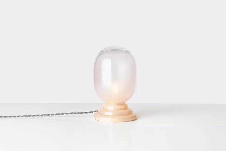 The glass table lamp resembles glass architecture with its minimalist shapes and proportions. The light reveals a colour gradient in the glass and completely changes the atmosphere of the surroundings.